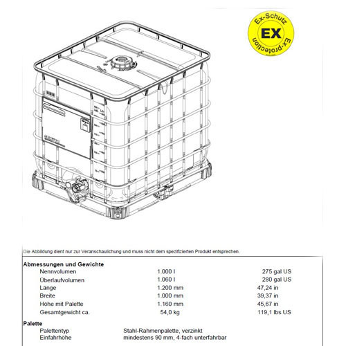 IBC-Container ECOBULK EX leitfähig, Inhalt: 1000 Liter (275 gal)