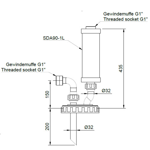 - Aufgeschraubten Säuredunstscheider Typ SDA 90-1L-el, elektrisch-leitfähig
