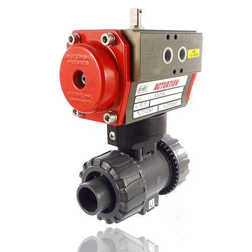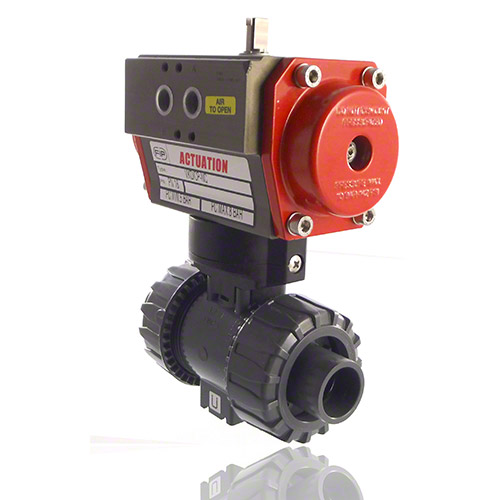 2/2-Wege-Kugelhahn mit gesicherten Überwurfmuttern aus PVC-U mit pneumatischem Stellantrieb