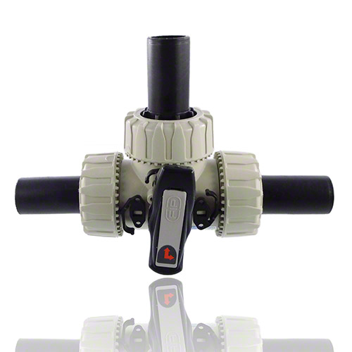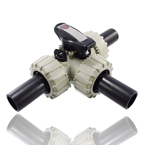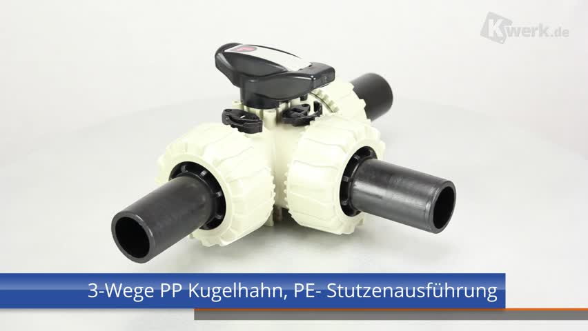 PP Kugelhahn 3-Wege, L-Bohrung, PE100-LS-Stutzen, EPDM