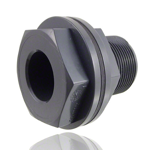 PVC U Behälteranschluss, mit Klebemuffe (d), Gewindestutzen (R) und Gewindemuffe (R1) mit Kontermutter