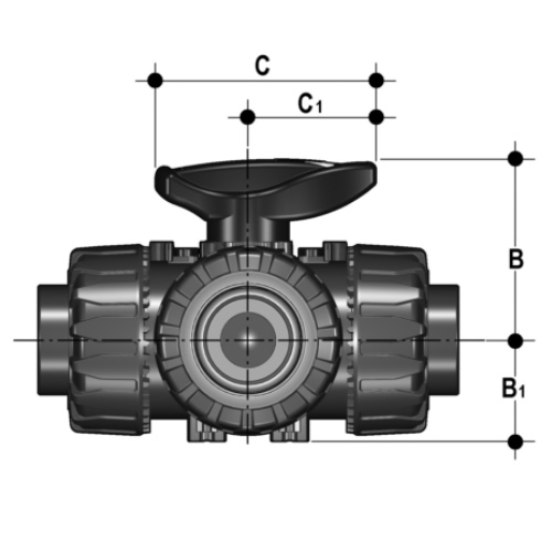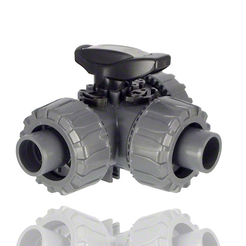 PVC-U 3-Wege-Kugelhahn, T-Bohrung, Klebestutzen, EPDM