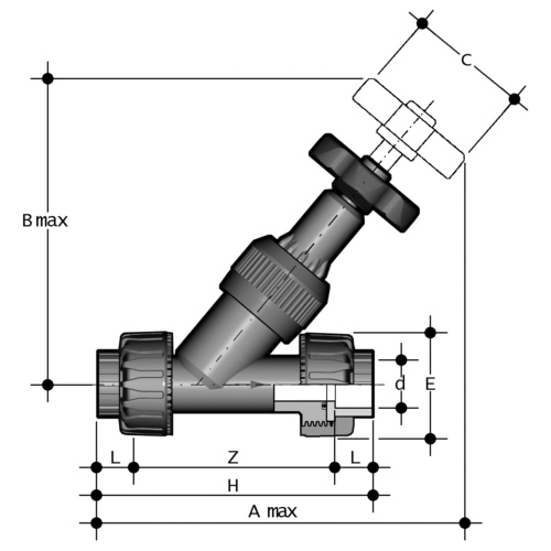 PVC-U Schrägsitzabsperrventil, Klebemuffe, EPDM