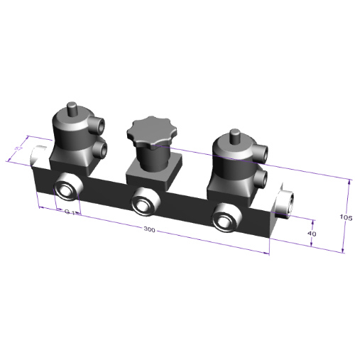 Der dargestellte Verteiler, stellt nur eine mögliche Ausführung dar. Es besteht die Möglichkeit, den Block mit Pneumatik-Antrieben entsprechend auszurüsten. Mögliche Bohrungen zur Einbringung  von Messstellen, wie z.B. PH, REDOX oder Temperatur sind ebenso möglich, wie die Reduzierung des Abgangs, bzw. des Durchgangs. Die Anschlüsse können sowohl als Gewinde, Flansch oder in anderen Ausführungen dargestellt werden.