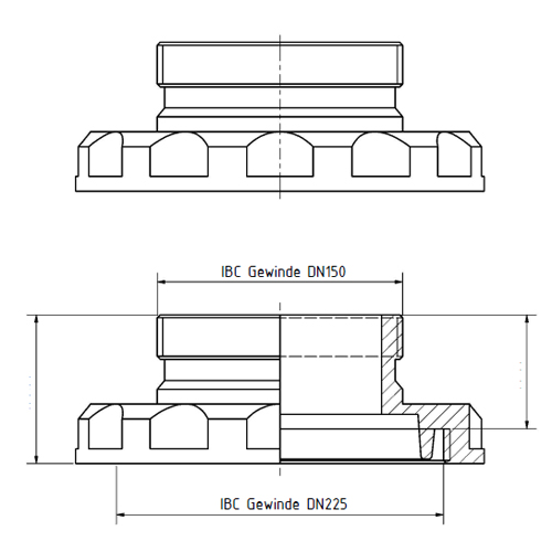 Pe-el Adapter für IBC BulK Container von DN225 auf DN150 MFB, elektrisch leitfähig