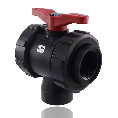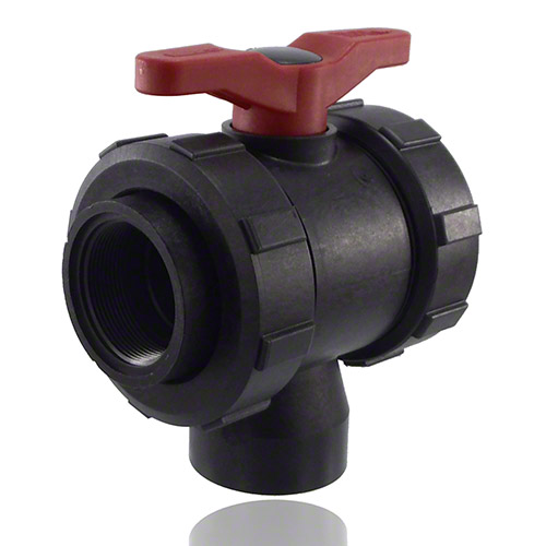 3-Wege-Kugelhahn PPGF,  Innengewinde, EPDM = roter Hebel