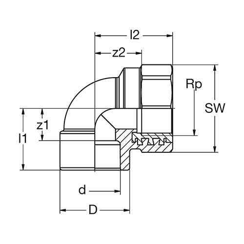 PP-RCT-RG Ü-Winkel 90° IG-zyl grün